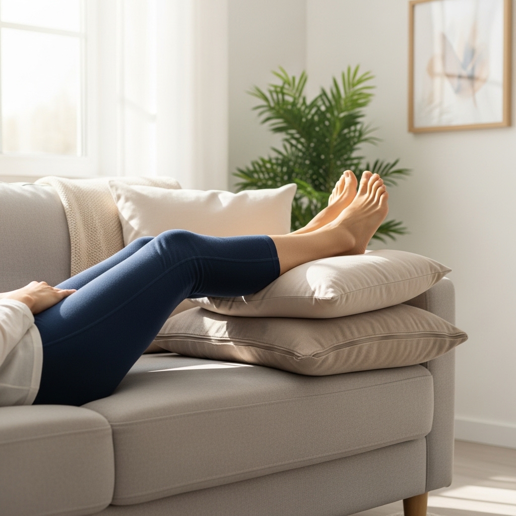 장시간 서서 일해야 한다면 한쪽 다리에만 체중을 싣는 '짝다리' 자세를 피하고, 양다리에 고르게 힘을 분산시켜야 합니다. 또한, 틈틈이 제자리걸음을 하거나 발뒤꿈치를 들었다 내렸다 하는 동작만으로도 종아리 근육이 펌프 역할을 하여 혈액 순환을 돕습니다. 쉴 때는 다리를 심장보다 높게 올리는 자세를 취하는 것이 부종 완화와 하지정맥류 예방에 큰 도움이 됩니다. 잠잘 때 발아래에 베개를 받치는 작은 습관 하나가 다리의 피로를 푸는 데 탁월한 효과를 줍니다.